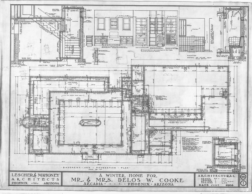 New York financier Delos Willard Cooke of the Cunard Steamship company and his wife Florence Meador Cooke began building an estate on Camelback Road, completed in 1929. The Cookes called their estate El Vernadero (“winter haven”) and lived there between 1926 and 1929. El Vernadero was a 3,500 sq ft Spanish Revival villa built on 40-65 acres that had been a citrus orchard. They planted many rare species, including some 900 palms. The decision to move to the Phoenix area was driven by Florence’s declining health and to escape the cold winters of the East Coast.